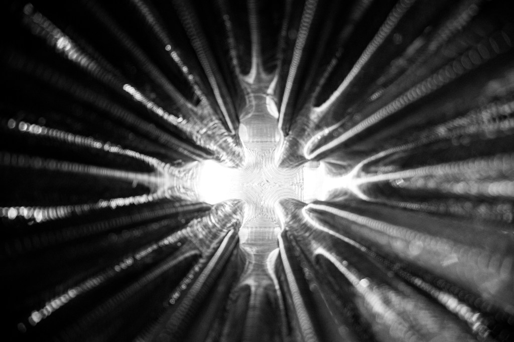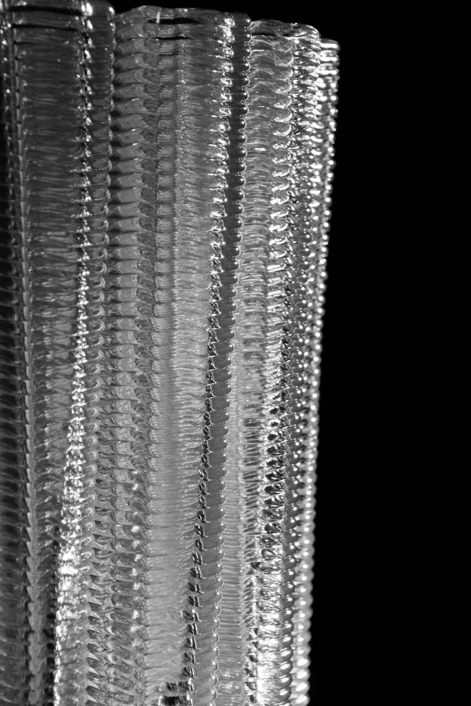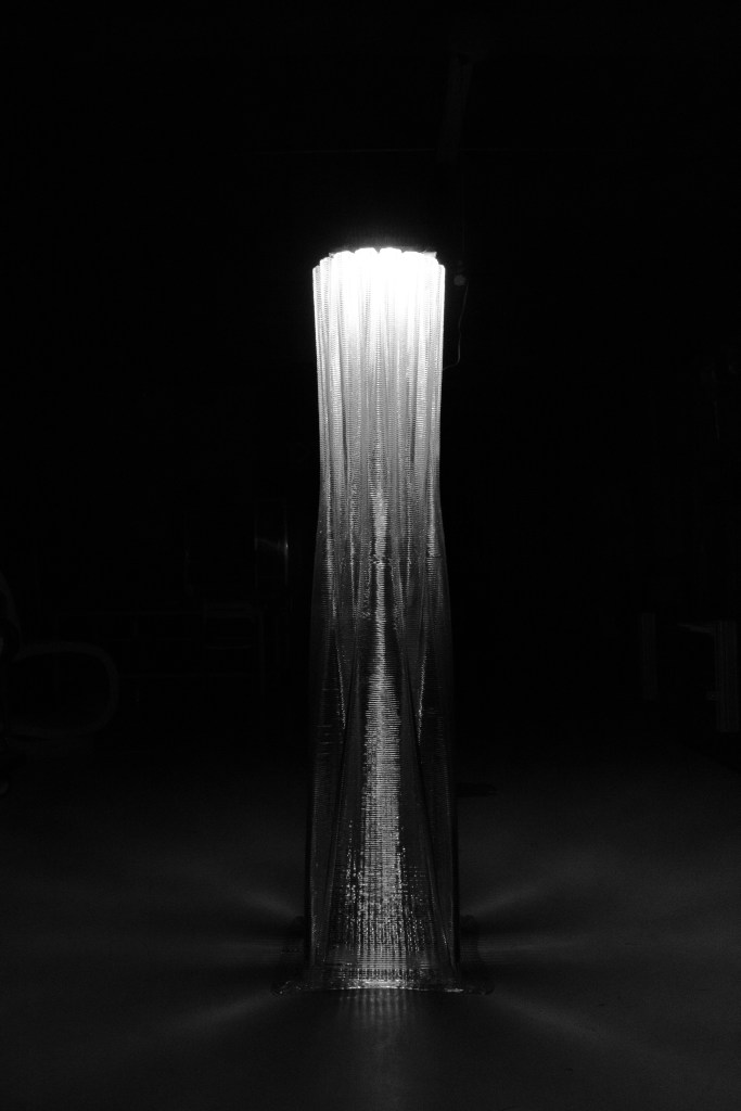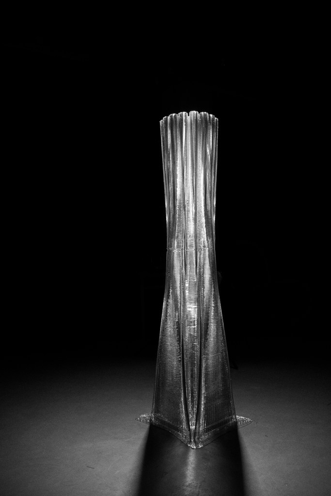 Robotic 3D Printing with recyclable plastic material, created a 2m high column product with transparency, lighting, futuristic affection. The printing tools on Robot-arm is invented and customized made to realize this design & production.