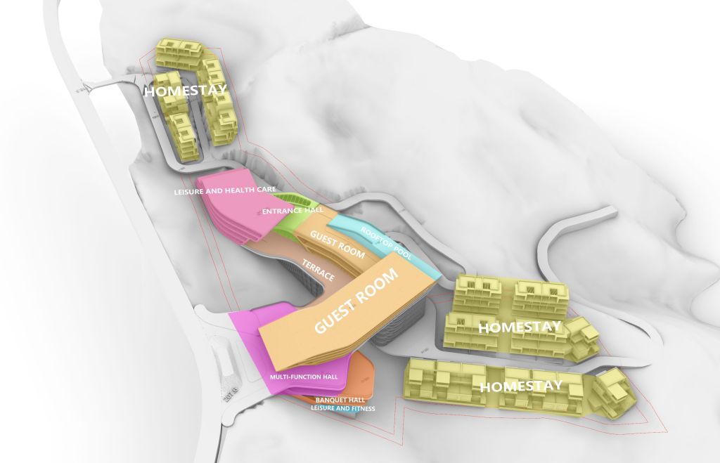 The site itself has obvious advantages, high terrain, rich landscape resources, easy to build high-end mountain hotels and residential products.